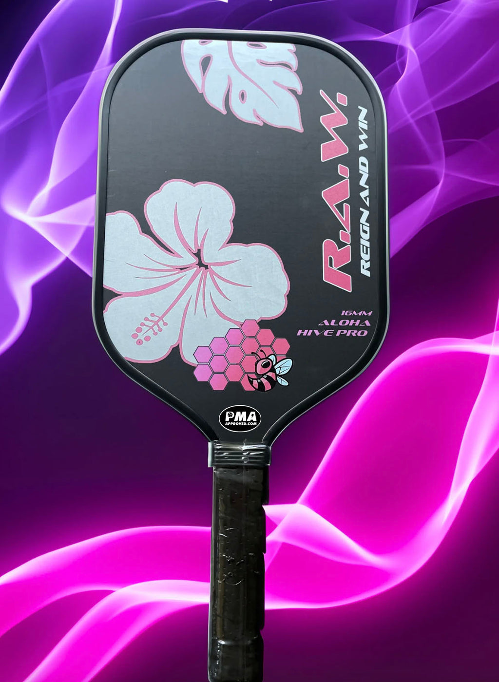 THE ALOHA HIVE WEIGHS AN AVERAGE OF 8.0 OUNCES TO GIVE YOU THE STABILITY YOU NEED AT THE NET FOR BLOCKING AND RETURNING HARD-HIT BALLS. AN ELONGATED SHAPE ALLOWS FOR GREAT COURT COVERAGE, WITH A LONG HANDLE FOR THAT TWO HANDED BACKHAND FOR ALL YOU TENNIS PLAYERS.